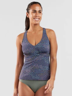 We’re anything but divas, but we’re always ready to go solo. When the mood strikes us to make “me time” into “sea time,” we take on the Aria Tankini – which rocks a single underwire for extra comfortable, streamlined support that’s ready to roll with any wave’s pitch, and play in harmony with our bigger “swells.” The strappy back brings out the sassy side of the suit, while the extra coverage of the tankini length means extra UPF when we’re out on longer “tours.” One wire, no pinch? Truly something to sing about. By Title Nine. 32C-38D.