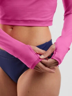 Shun the sun. The Blocker Cropped is like instant shade for our shoulders and arms, without the unnecessary bulk. For some woman-made A.C., just dunk it, wring it, and pull it on. Thumbholes. This year’s version has better coverage for fuller busts. By BloqUV. XS(0-2), S(4-6), M(8), L(10-12), XL(14-16).