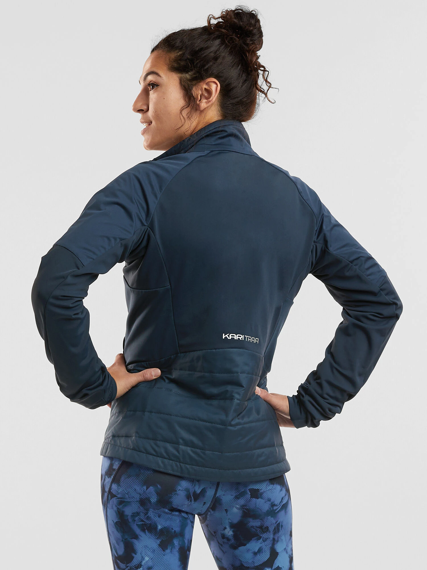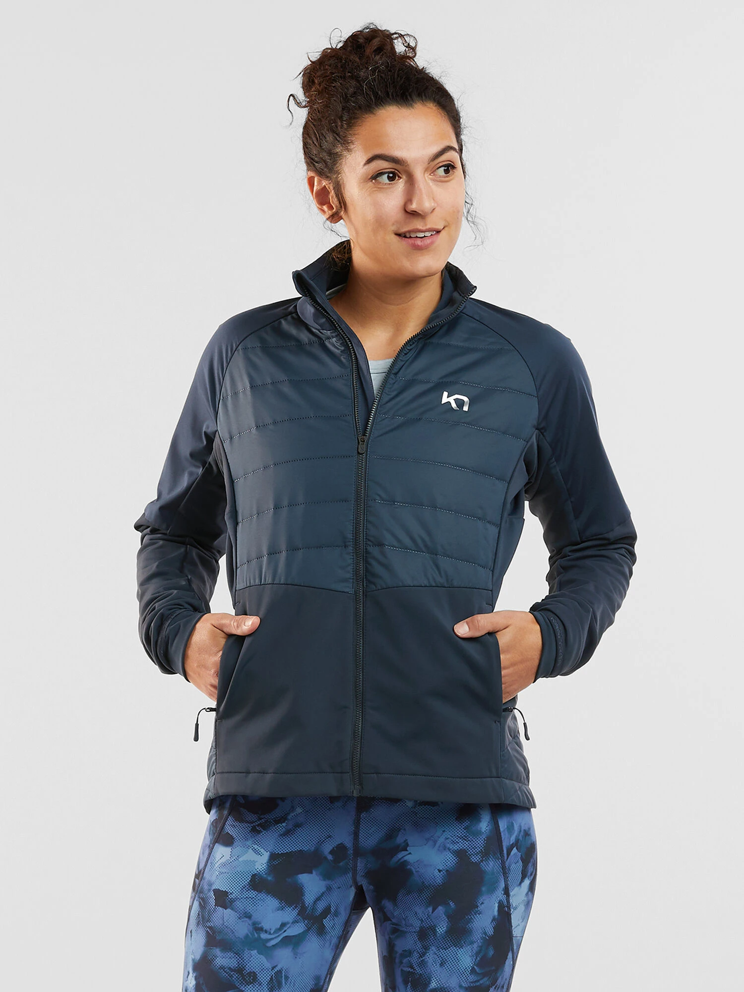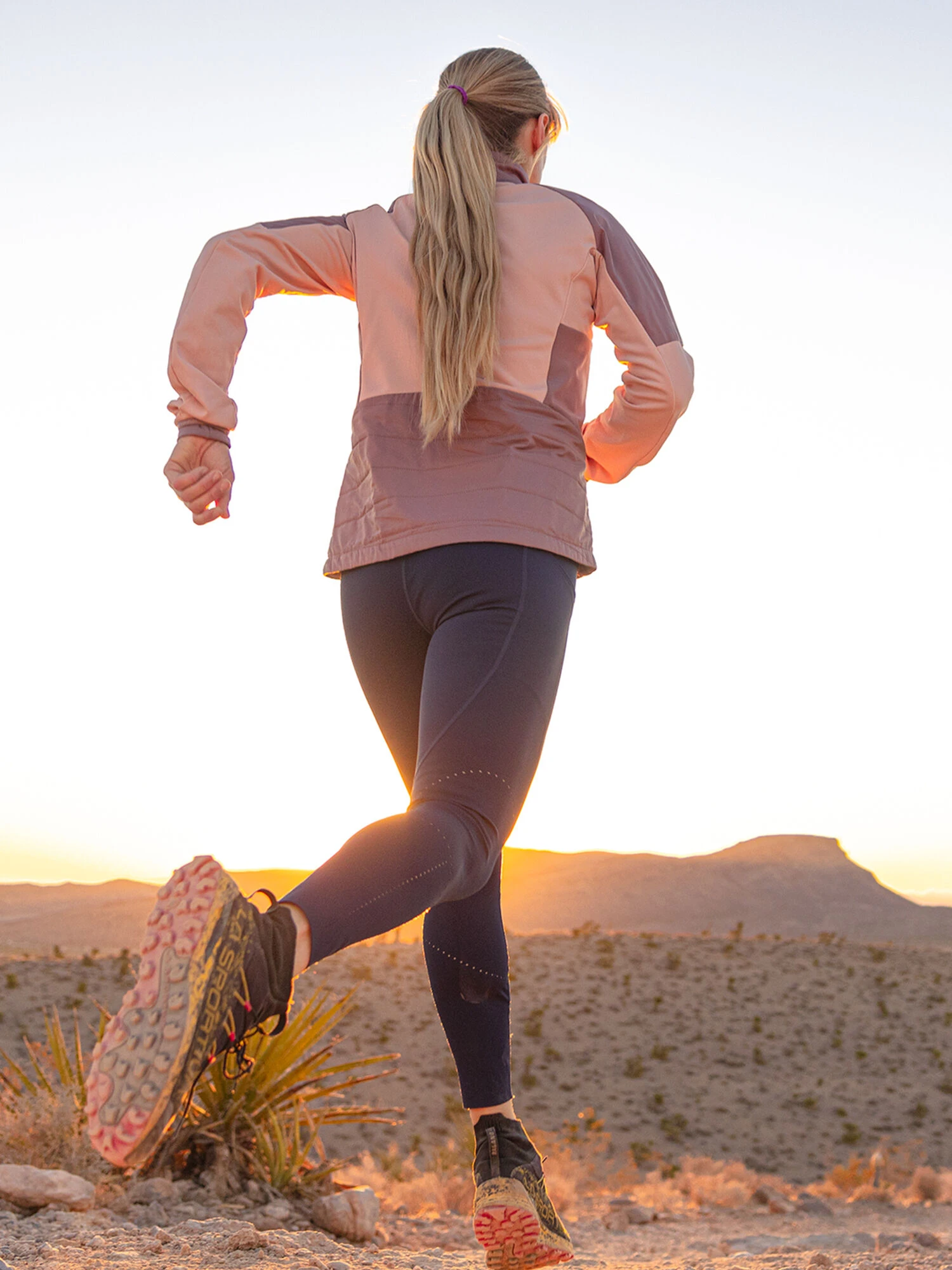 Disrupt the fitness wardrobe status quo. Disrupt that whole workout-as-usual routine. Disrupt the ‘wait till daytime’ police. When we pull on this jacket, the world seems a little happier and we feel a lot faster. Smooth exterior with a brushed interior fleece to trap heat and pull away sweat. Lightly insulated chest and textured fleece lining across shoulders bring the heat where it counts. Drop tail hem, body-conscious fit. Chin guard, wrist gaiter, thumbholes. 360 reflective. Adjustable hood. By Kari Traa. XS(0-2), S(4-6), M(6-8), L(10-12), XL(14).