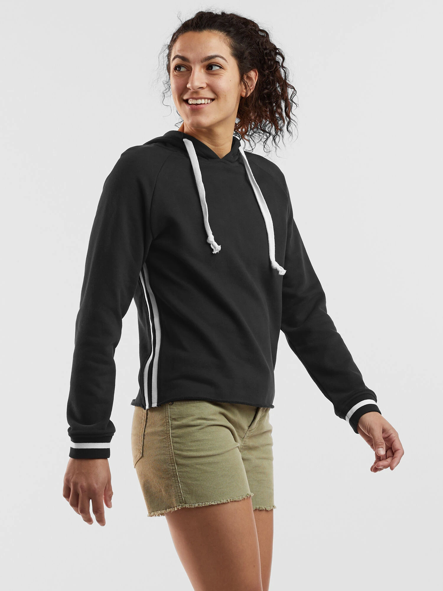 When we’re embracing our freedom, we pull on the Joyride Hoodie – which brings max comfort to those of us who love pushing things to the max. Combining that classic track suit stripe with a slightly cropped fit and a super soft “French Terry” cotton fabric blend with built-in four-way stretch, this midlayer keeps us ready to decompress wherever we’re wandering. Knitted cuffs, raw edge hem, knit drawcord. Fave companion to the Joyride jogger, short, or skirt. By Krimson Klover. XS(2), S(4-6), M(8-10), L(12-14), XL(16).