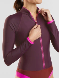 This hard-chargin’ one piece has got an affinity for those unpredictable NorCal waves. Built with a stay-put construction, this sun-protecting long sleeve suit can take its fair share of tossing around and come out unscathed. Designed to wear over a bikini top. Deep zip for easy on/off. By Title Nine. XS(2), S(4-6), M(8-10), L(12-14), XL(16).