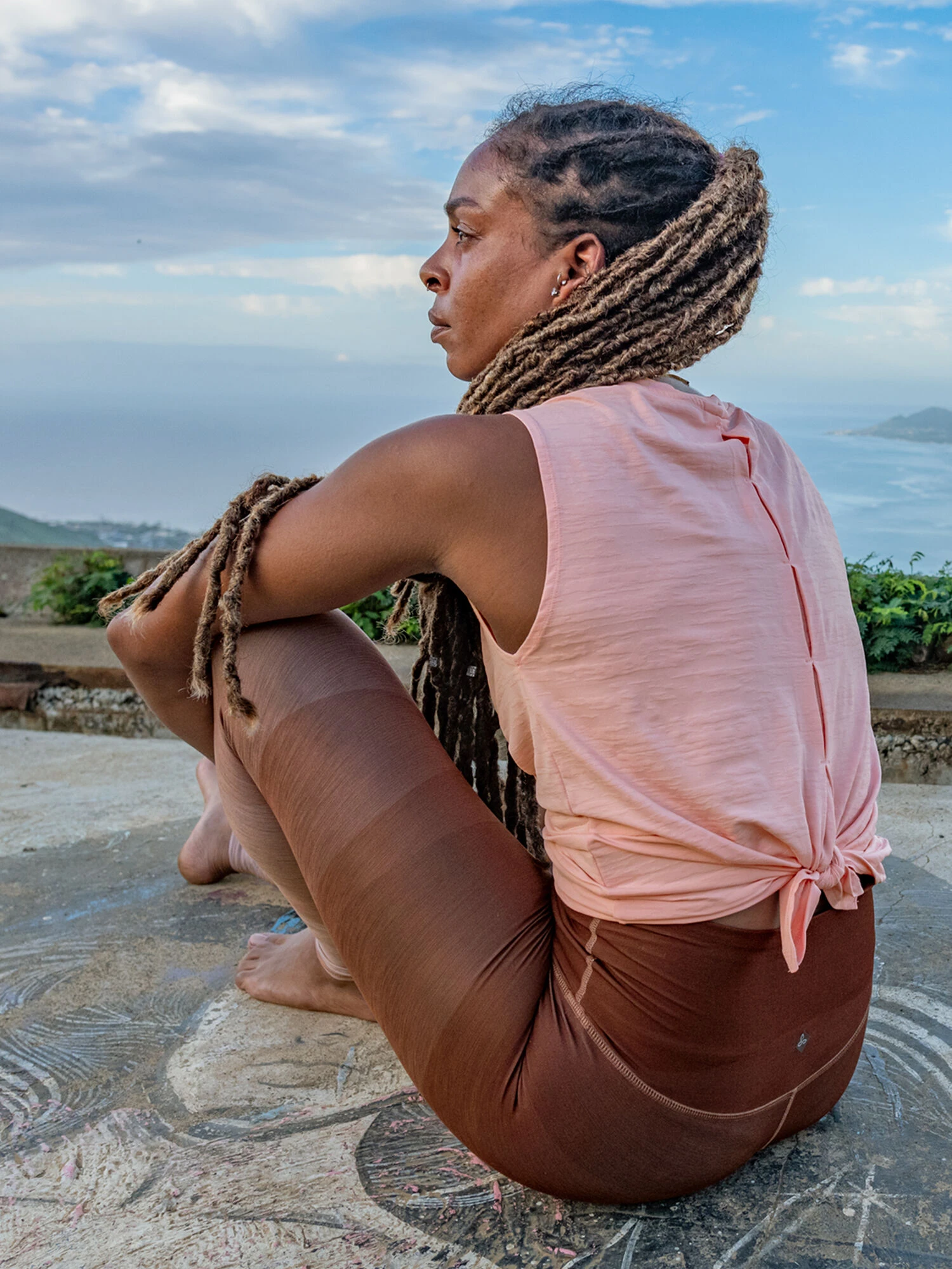 For blazing through workouts and to-do lists alike. Delivers street-ready burnout aesthetic with athletic wicking power and a surprisingly silky, light feel. Now with StinkStopperâ„¢ for more wearings between washings. Back pleat detail. Back reflective hit. By Title Nine. XS(2), S(4-6), M(8-10), L(12-14), XL(16).