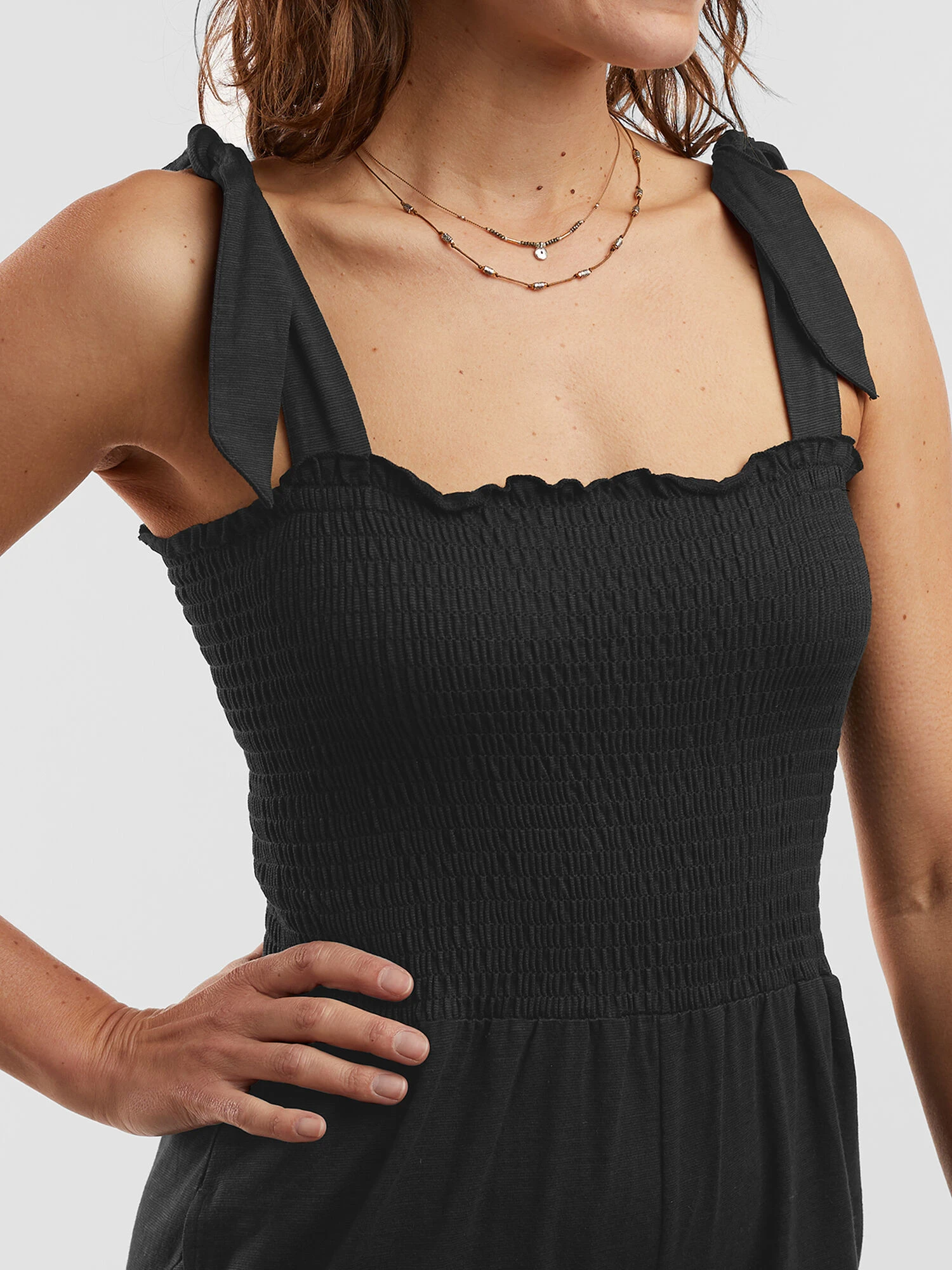 The ultimate ode to our all-time favorite tee – in a new one-and-done jumpsuit! When every day could be an adventure we love the Samba that fits us AND our exploits to a T. Smocked bodice and adjustable ties for a custom fit. By Toad&Co. XS(2), S(4-6), M(8-10), L(12-14), XL(16).