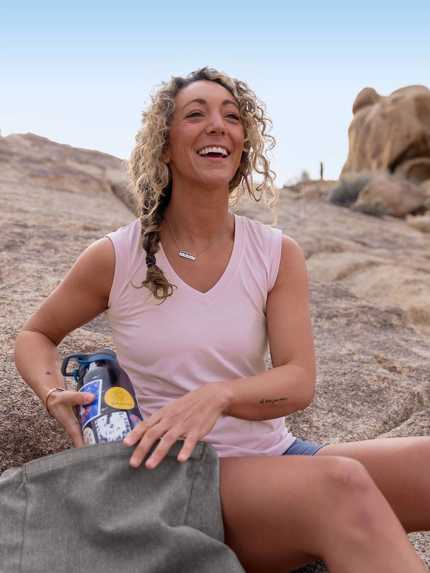 We prefer our sunshine with a little extra flair – and we get all that and more from the Solar Flair Tank Top. This quick dry knit is a lighter and more modern alternative to our typical hike top, and the side cinch details are bringing that extra spark. And, the whole thing packs a UPF 30 punch, which is the real heat it’s bringing. By Indeyva. XS(2-4), S(6-8), M(10-12), L(14), XL(16).