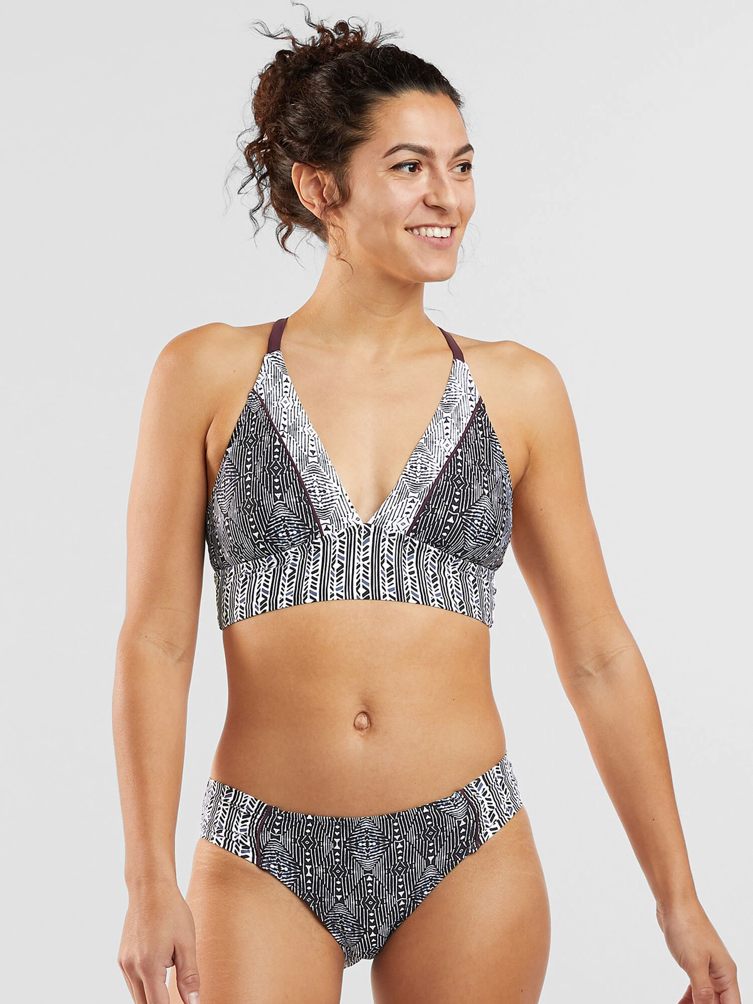 Tired of playing swimsuit roulette? For the gambling kind of gal who wants better odds, put your money on a suit that will fit and flatter a real woman’s body. Put your money on the Sure Bet. Classic triangle bikini appeal in a longline style that covers but never smothers. Fully lined. Pullover; x-back styling. By Title Nine. XS(2), S(4-6), M(8-10), L(12-14), XL(16).